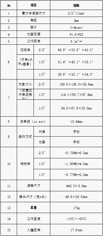 S600007 2/3"500万像素级定焦镜头