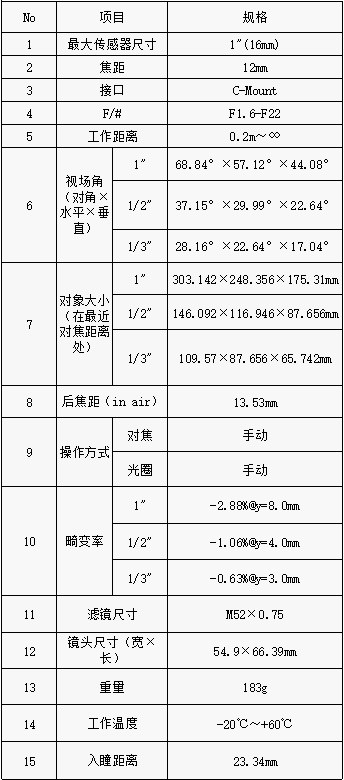 S600027 1"500万像素级定焦镜头