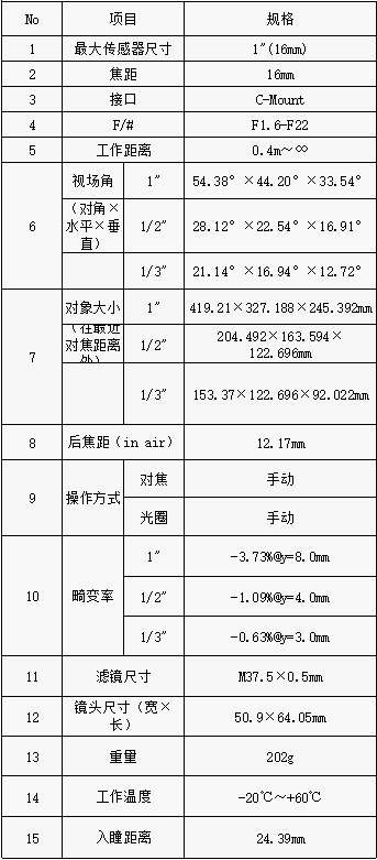 S600028 1"500万像素级定焦镜头