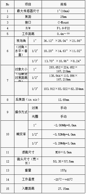 S600030 1"500万像素级定焦镜头
