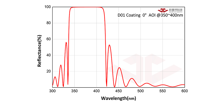 熔融石英高精度平面反射镜 尺寸=38.00mm T=10.00mm 介质高反—D01@350~400nm 熔融石英