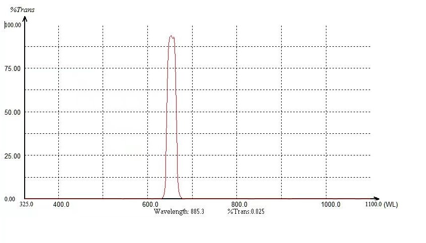 可见光带通滤光片,透过峰值波长650nm,半波带宽<20nmOD3M62螺纹,石英基底高温镀膜。