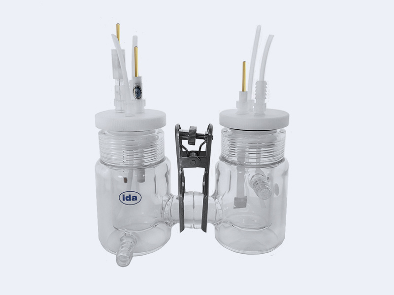 SSC-000889 可换膜H型电解池(常规型) CH2015(常规型) 单池容积:50ml 产品特点:双池水浴控温,两池间的离子膜可快速更换