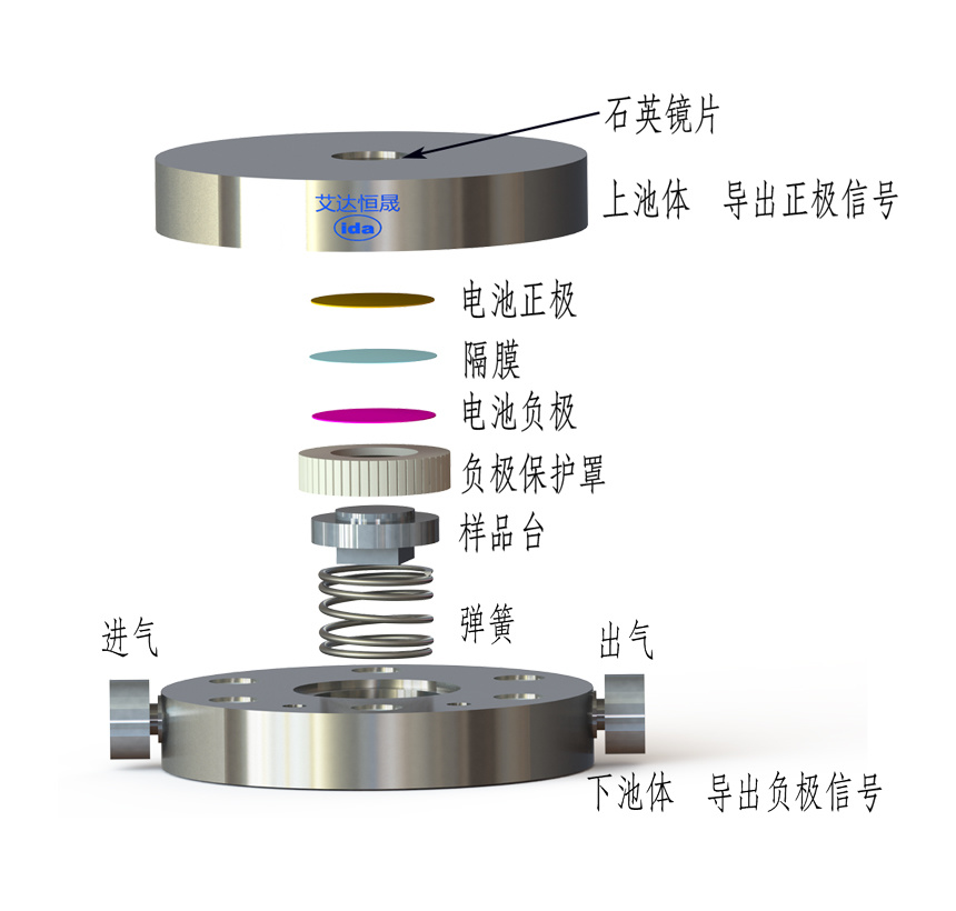 SSC-000955 电池原位拉曼测试池 E704B 两电极+通气;池体材质:319不锈钢+蓝宝石窗口