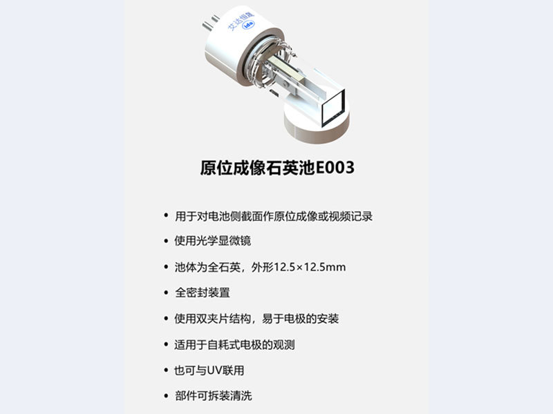 全石英熔融法制作,聚四氟乙烯盖子 石英池体尺寸:12.5(长)*12.5(宽)*53mm(高,包含螺纹高度18mm) 用途:可用于电池充放电观测