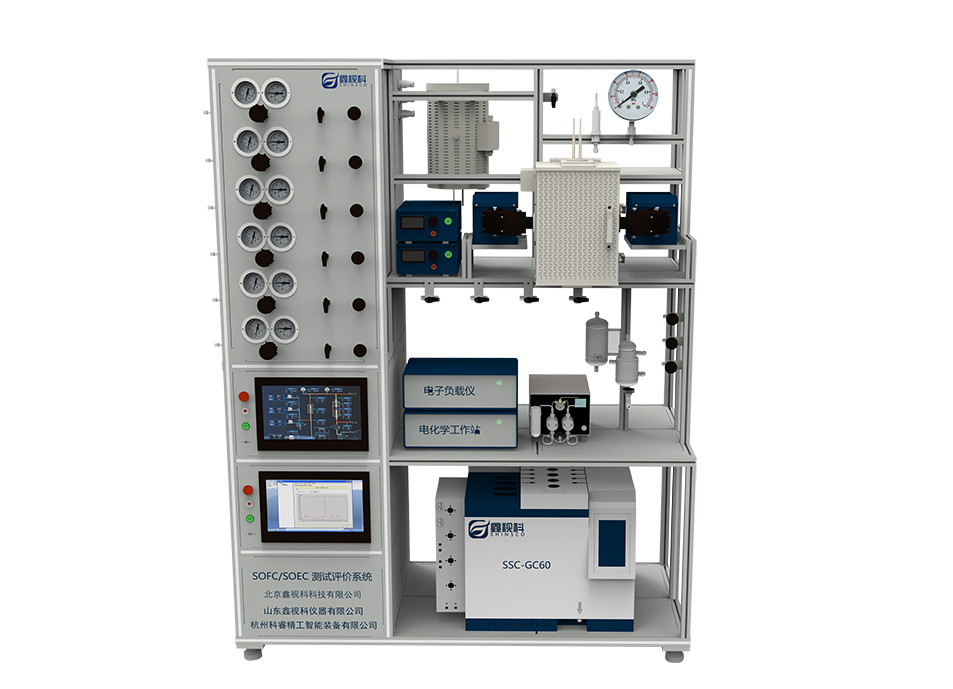 SSC-SOEC80电热协同催化剂评价系统是一种结合电场和热场协同作用的固体氧化物电解池(SOEC)实验平台,用于高效电解H₂O/CO₂制取H₂/CO,是SOFC的逆向反应。该系统通过精确控制温度、电压和气体组成,研究电热耦合效应对电解性能的影响,并优化催化剂材料和操作参数。本SOEC评价系统设计科学、功能全面,能够满足从材料研究到系统集成的多种测试需求。通过高精度控制和多功能测试模块,可为SOEC的性能优化与商业化应用提供可靠的数据支持。