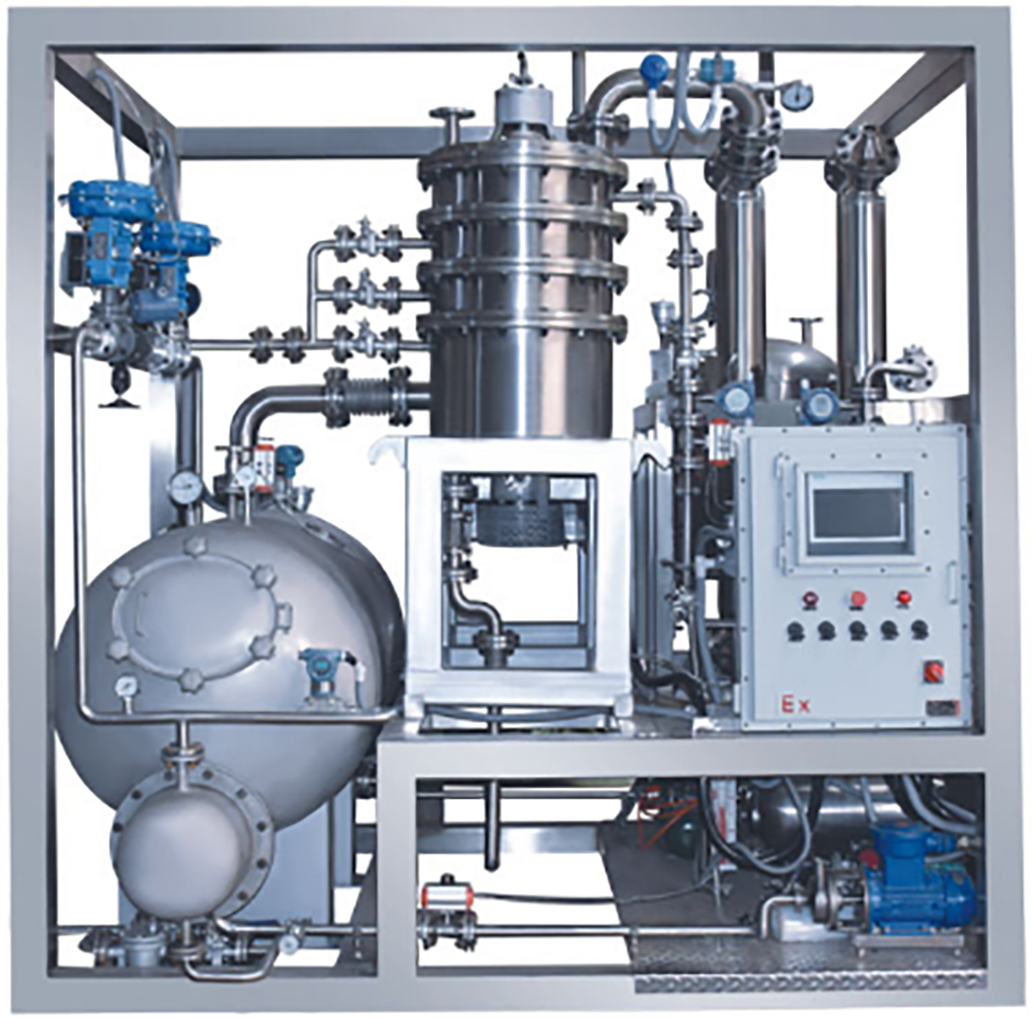 利用混合物中各组分在一定温度下具有不同挥发度的特性,在超重力环境中,液相被撕裂成微米至纳米级的液膜、液丝和液滴,增大气液两相的接触面积和碰撞几率,微观混合和传质过程得到极大强化,传质效率可提高数十倍。
