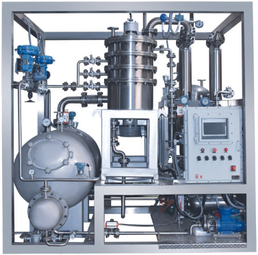 高度低、超重力精馏装置主要由超重力床主机、再沸器、冷凝器、泵、储罐、温度表、压力表、阀门以及相应的控制系统等组成。采用模块化设计,集成控制仪、流量计、阀门、管道等组件,现场安装简单快捷。模块可拆分重组,便于运输和场地适配,工厂预制测试减少现场安装步骤。一体化设计简化维护流程,设备运行稳定性高。