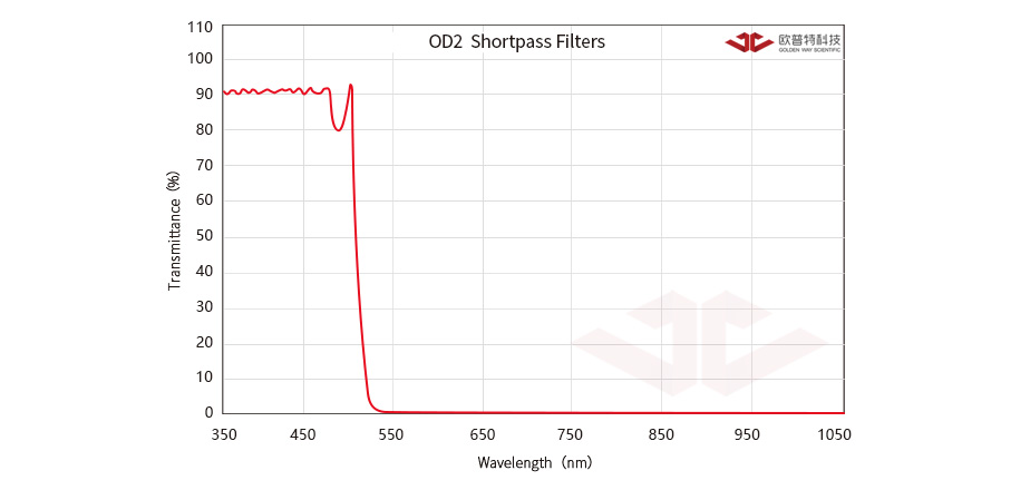 经济型介质短波通滤光片 中心波长=500nm* 直径=50.00mm 精退火H-K9L光学玻璃