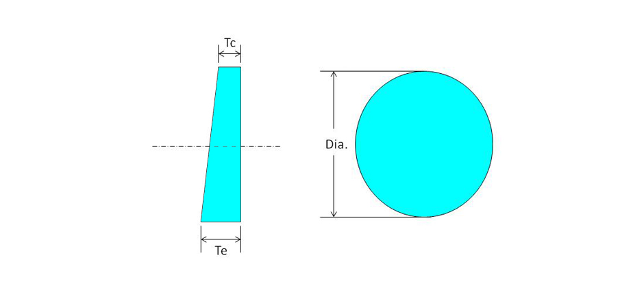 | 楔角:30分 ± 10分 | 表面光洁度: 60/40 |