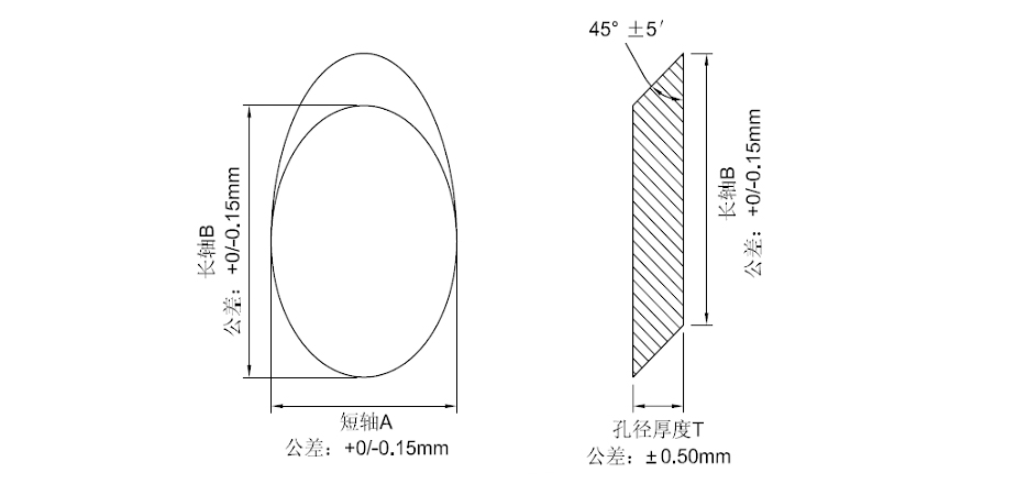 K9椭圆反射镜 尺寸=12.50mm T=6.00mm 普通铝膜+保护 精退火K9光学玻璃