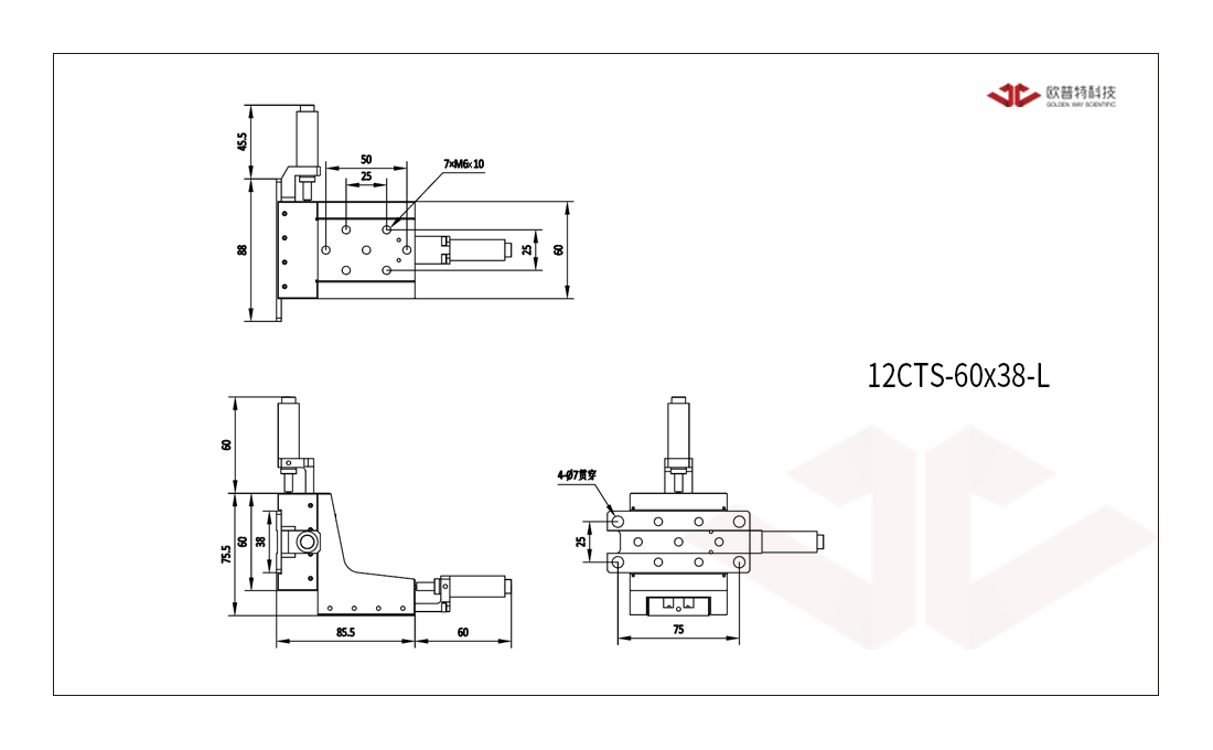 各轴移动平台运动方式都采用线性交叉滚柱轴承;铝合金材质精密加工;采用弹簧复位,钢丝导轨,承载大,寿命长;台面和底座分布标准孔距安装孔。