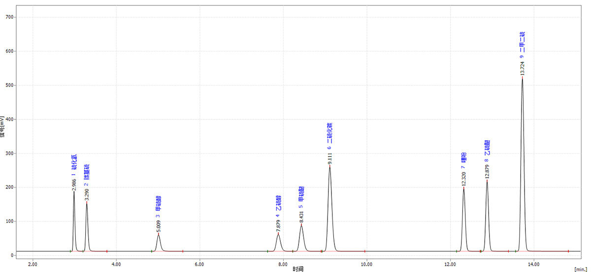 * 采用多阀多柱、中心切割技术、高性能进口色谱柱,通过一次进样完成硫化物快速分析。