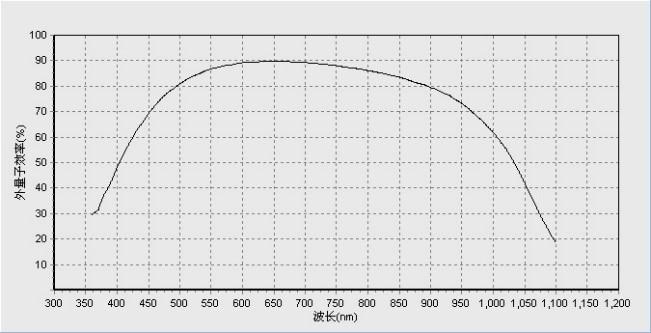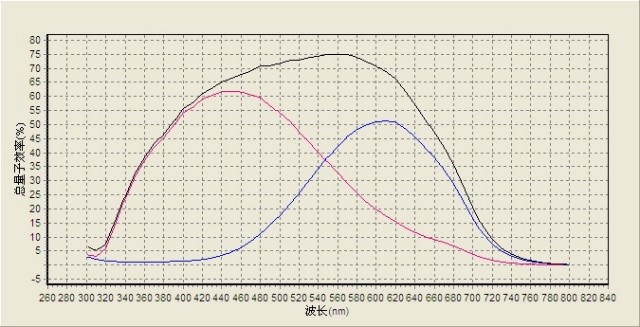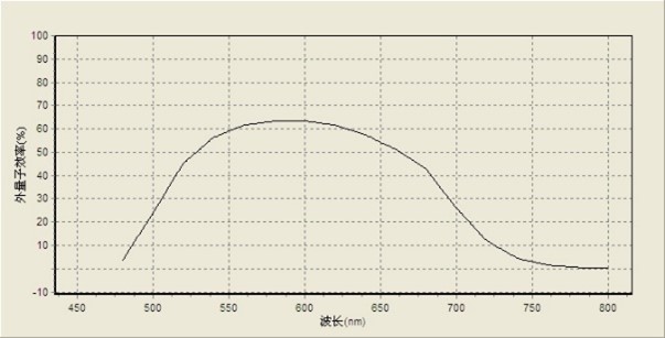 | 实测染料敏化电池量子效率曲线 | 实测染料敏化电池光谱响应曲线 |