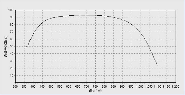 | 实测硅电池外量子效率曲线 | 实测硅电池内量子效率曲线 |
