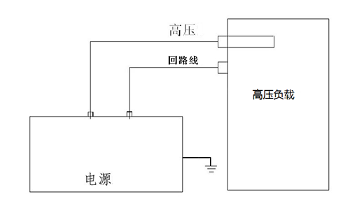 电源的高压输出必须与放电电极可靠连接。并且保证具有可靠的高压绝缘性能。电源的电流回路,接设备的外壳或电流回路,电流回路切不可断开,否则可能引起高压泄露。电源的机壳应可靠接大地。以保证使用安全。接线如下图:
